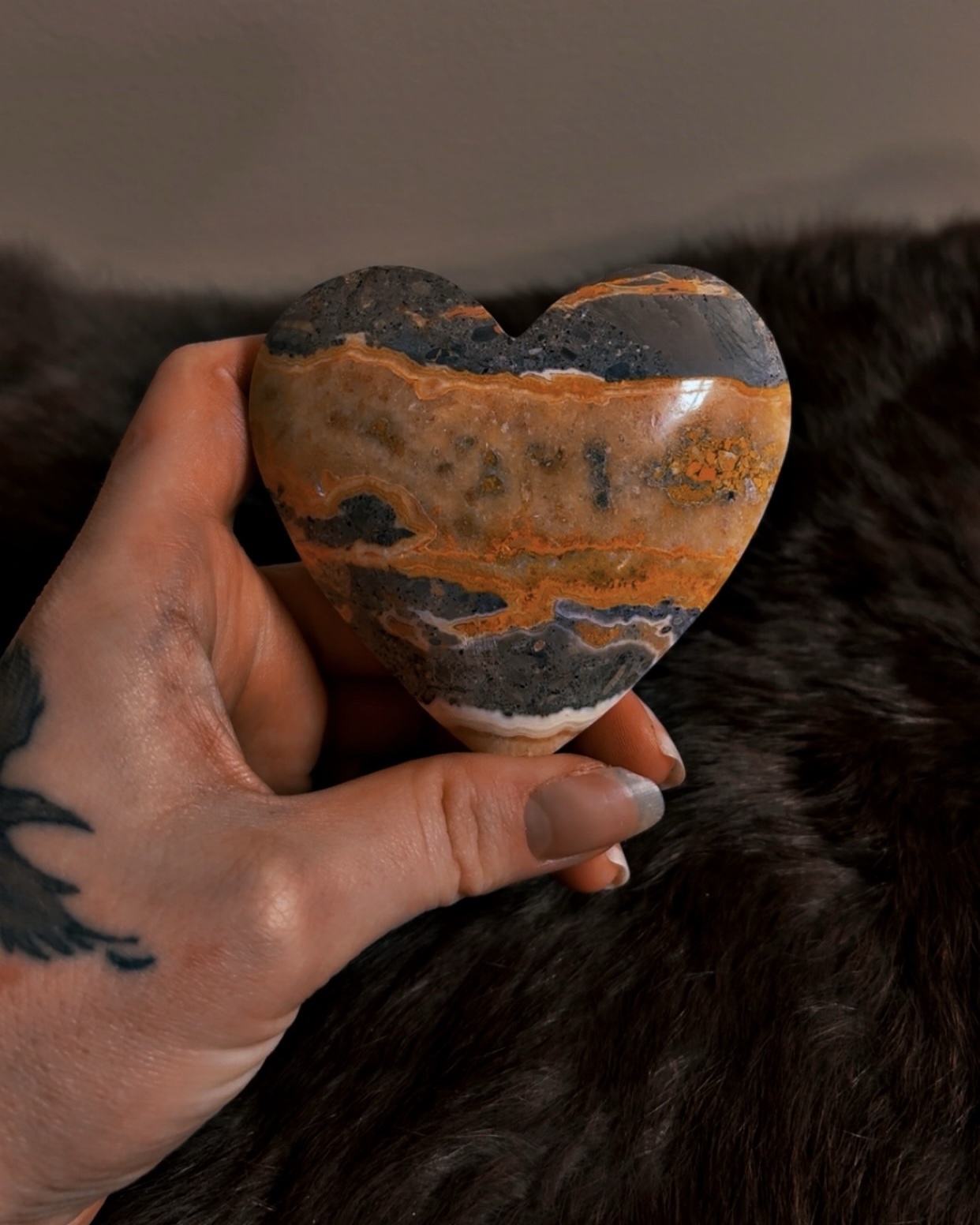 Often associated with courage, self-belief, and joyful forward motion, Bumblebee Jasper supports stepping into one’s power without force. In heart form, it becomes especially supportive for integrating confidence with compassion—encouraging authentic expression and inner alignment.