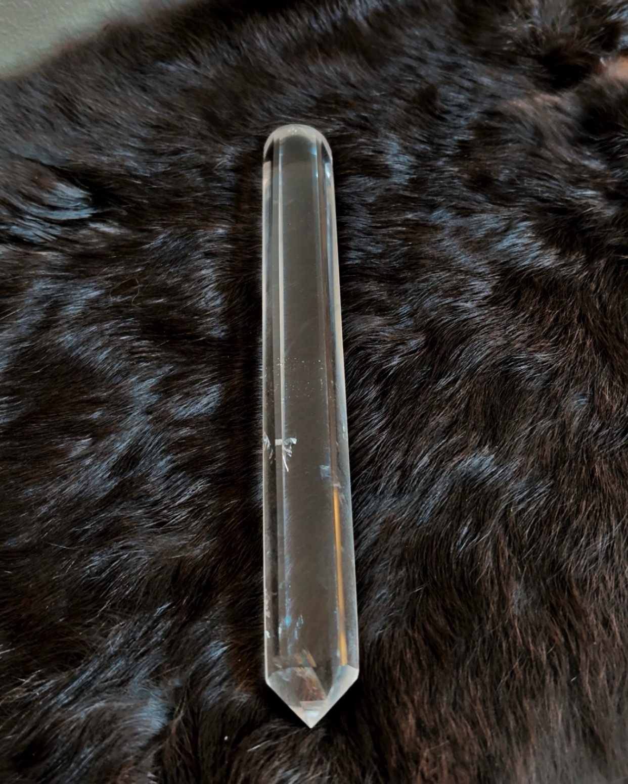 Clear Quartz is durable but should be handled with care to avoid chipping at the tip. Cleanse regularly using smoke, sound, moonlight, or intentional breath. Avoid leaving in prolonged direct sunlight to prevent internal stress fractures.