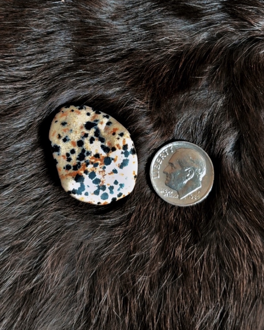Dalmatian Jasper is often associated with joy, grounding, and emotional balance. It’s known for helping dissolve overthinking, reconnect with a lighter perspective, and gently anchor the spirit back into the body. Many people work with this stone when they need support staying present, playful, and emotionally steady — especially during stressful or mentally heavy periods.