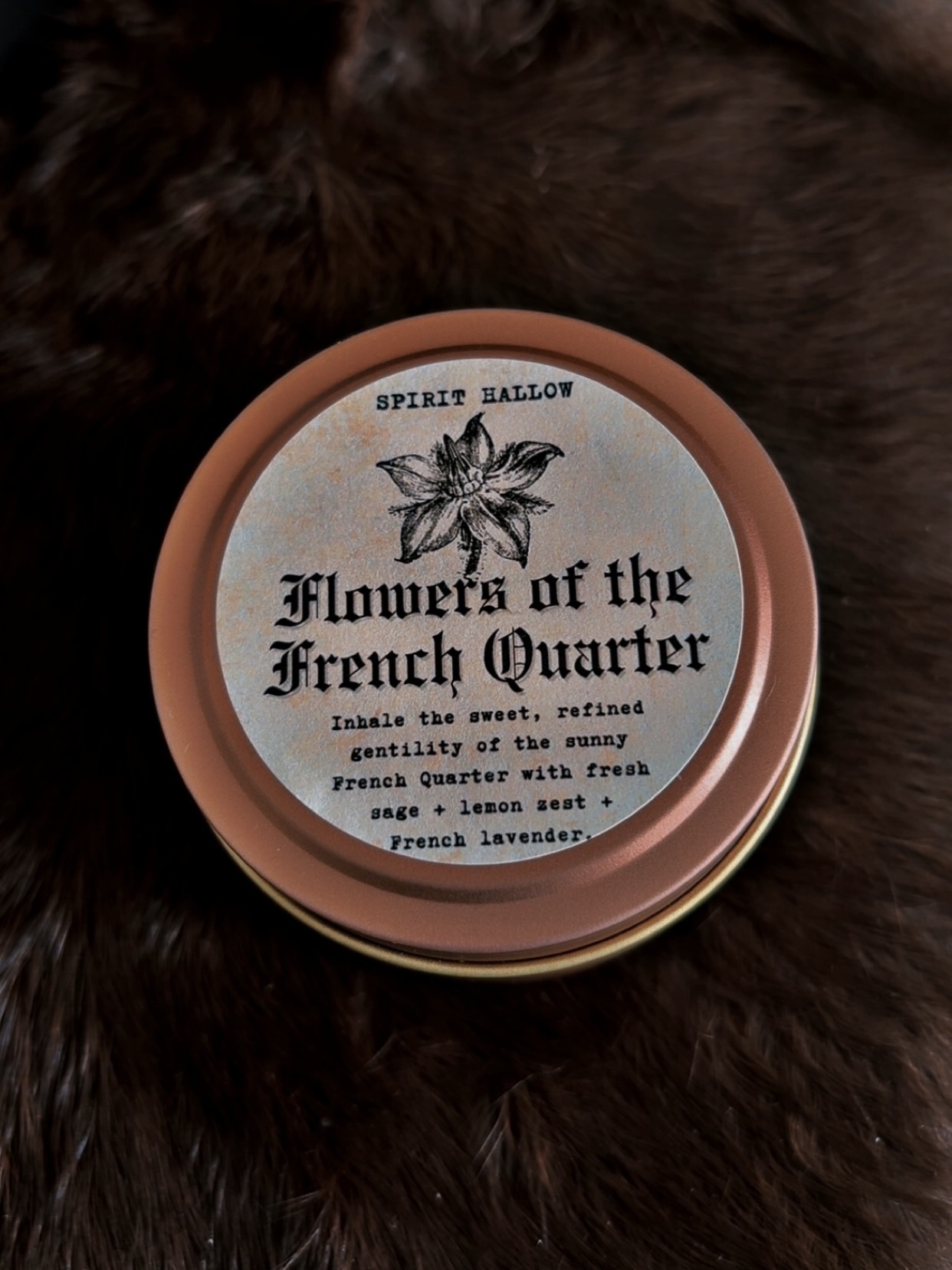 Hand-poured in tins with lids. Please allow for natural variations, as no two crystal or botanical inclusions are exactly alike.
