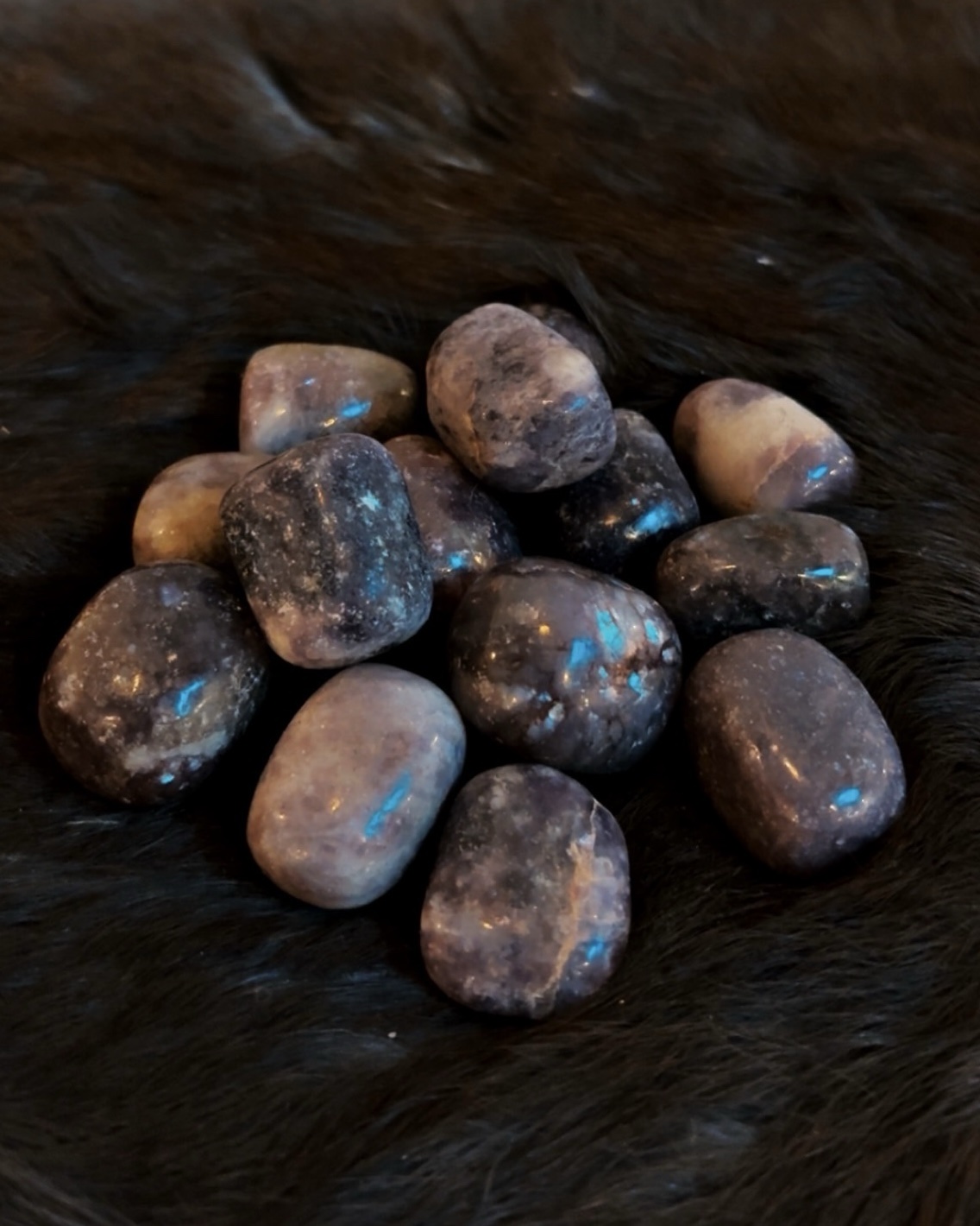Lepidolite contains mica and should be handled gently. Clean with a soft cloth or brief rinse; avoid soaking or salt.