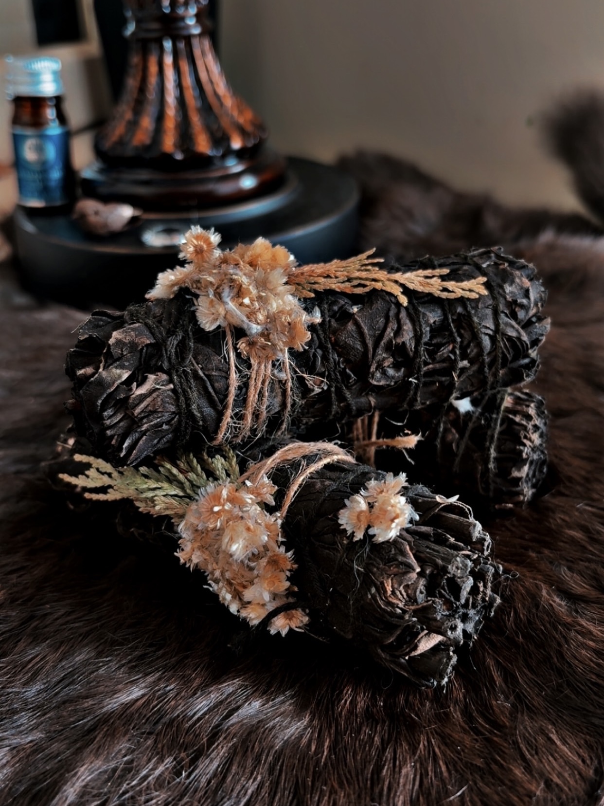 Upgrade your cleansing + purification rituals with this dark, protective, ethically sourced 4″ Midnight Bloom Cedar, Mullein + White Sage Smudge Bundle!