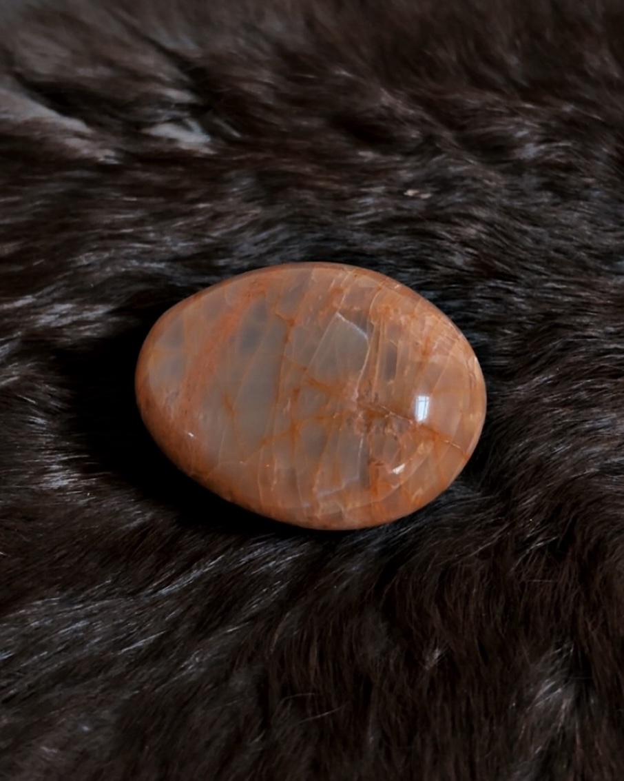 This Peach Moonstone palm stone radiates a warm, nurturing energy, blending the intuitive wisdom of moonstone with soft, heart-centered grounding. Its gentle peach tones are associated with emotional healing, self-compassion, and restoring balance during periods of sensitivity or change.