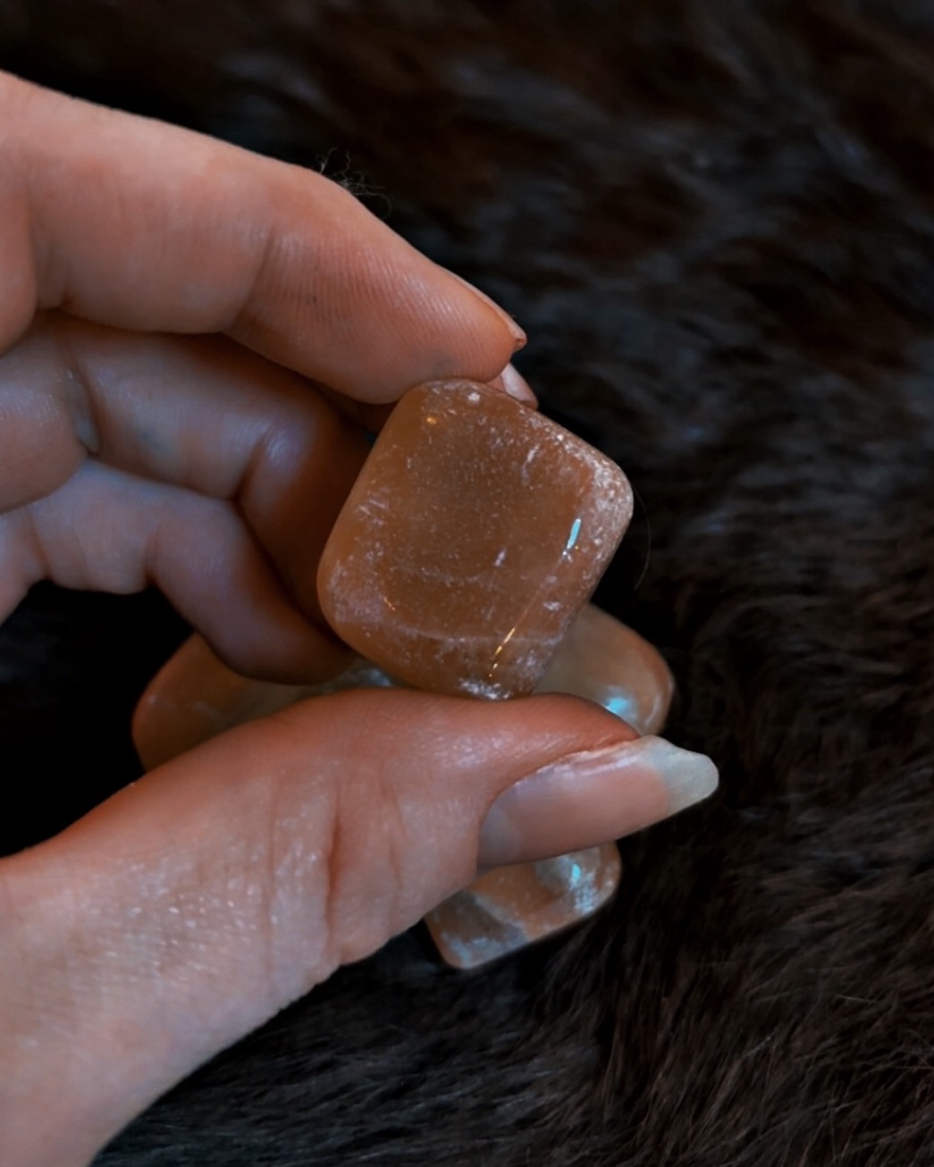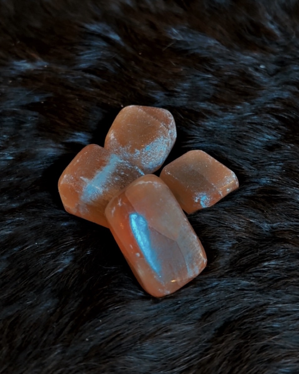 These Pink Selenite tumbled cubes carry a soft, luminous warmth with gentle peach-to-blush tones and a satin-like glow. Polished into a smooth cube shape, they offer both calming energy and a sense of stability, making them especially appealing for intentional placement and ritual work.