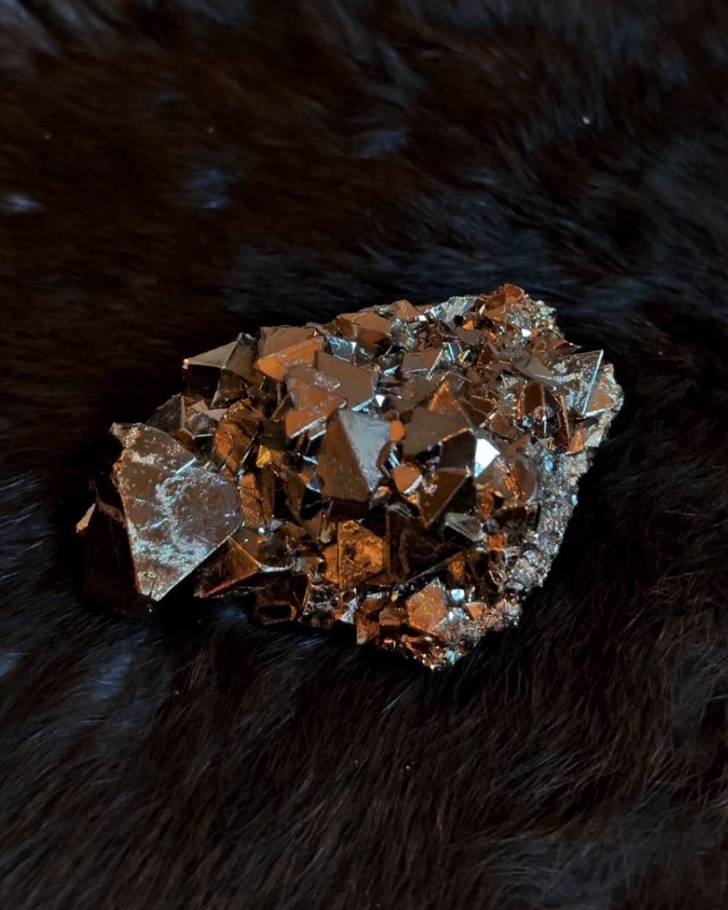 These natural Pyrite clusters are bold, grounding, and unmistakably powerful. Each specimen features sharp geometric crystal formations with a deep metallic luster, ranging from warm gold to darker, smoky bronze tones depending on the light. No two are alike — each carries its own architecture, weight, and energetic presence.