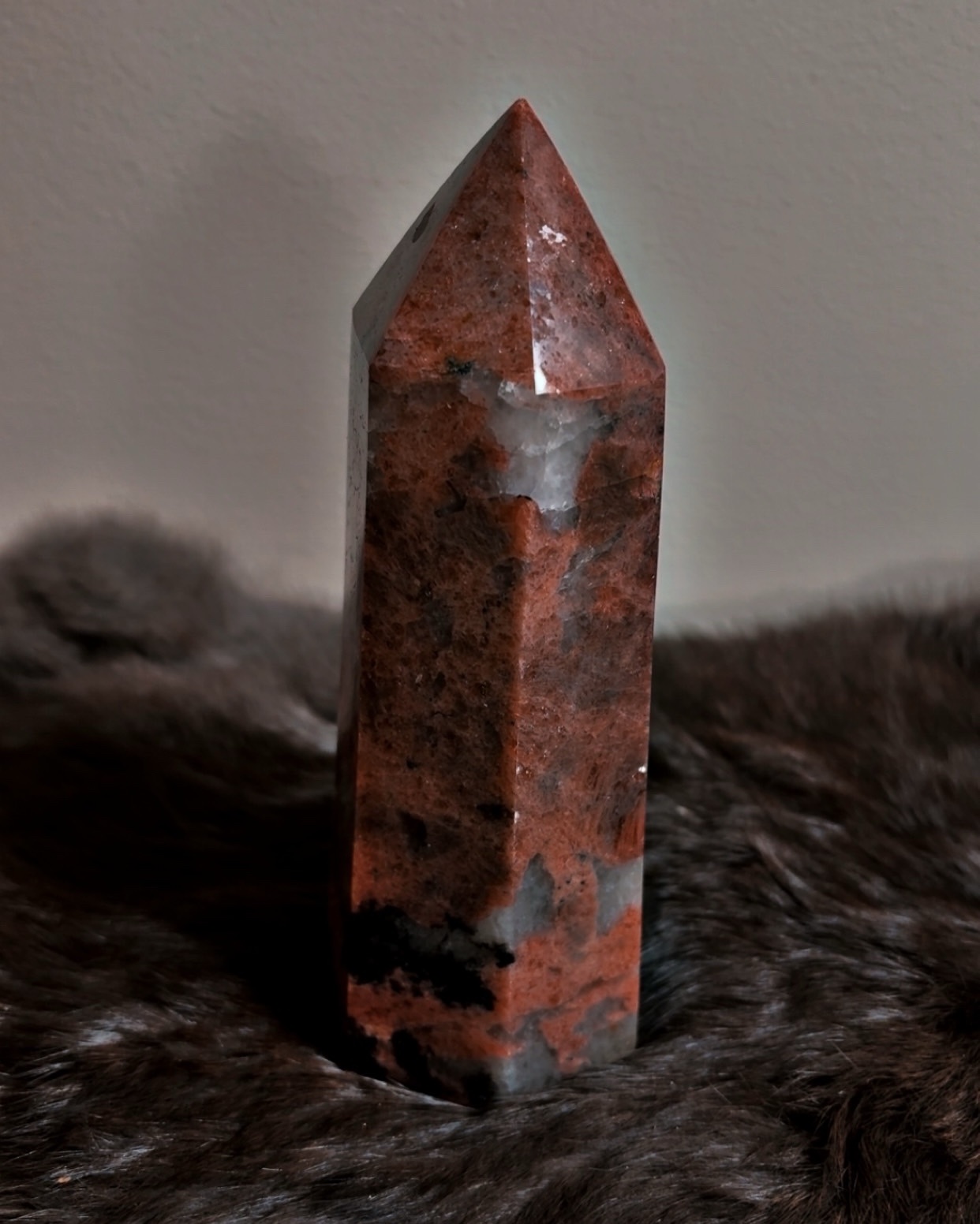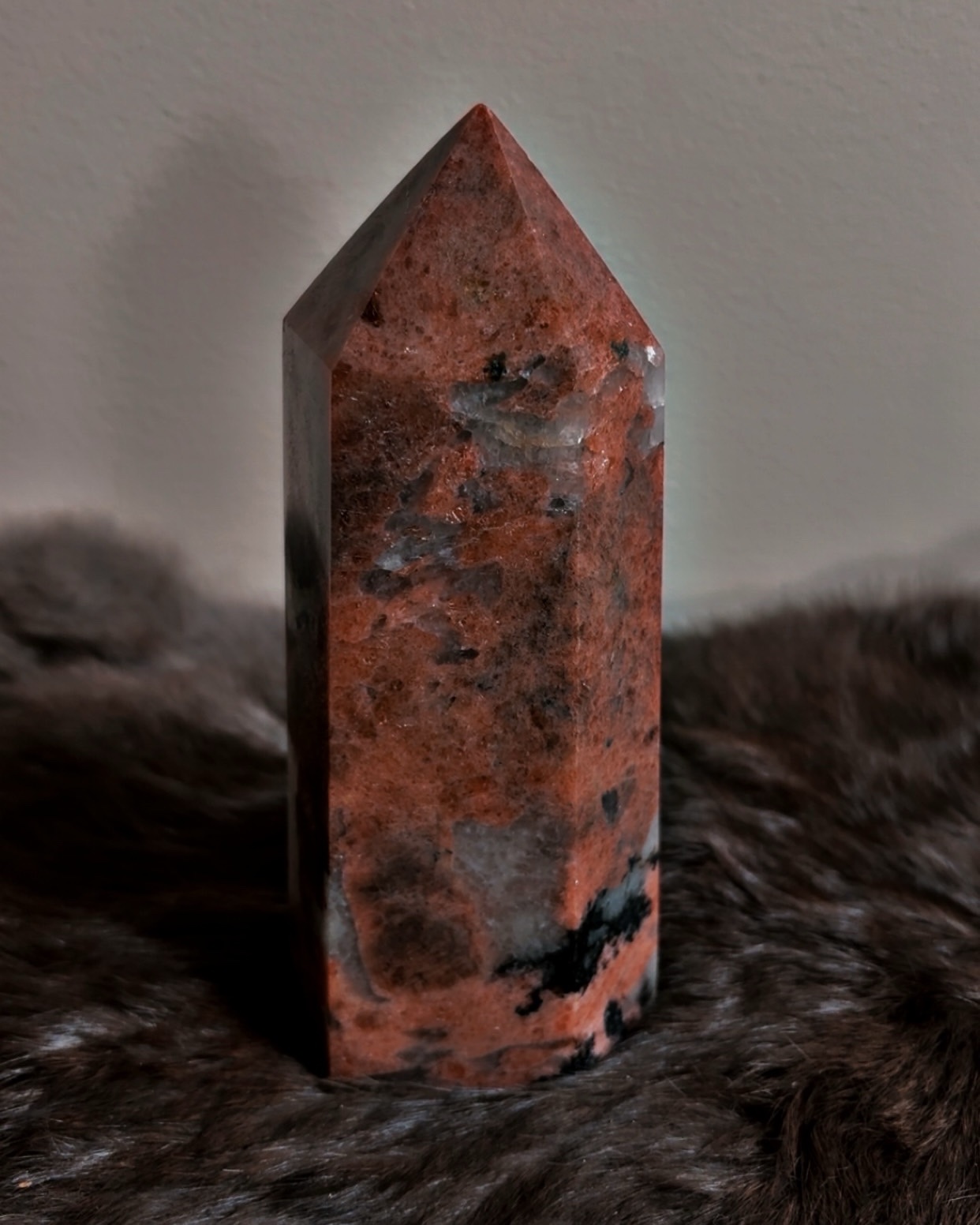 Rhodonite is often associated with emotional repair, resilience, and integration, and in generator form it emphasizes steady forward movement rather than emotional cycling. This tower supports long-term healing, boundary restoration, and heart-centered strength without softness or fragility.