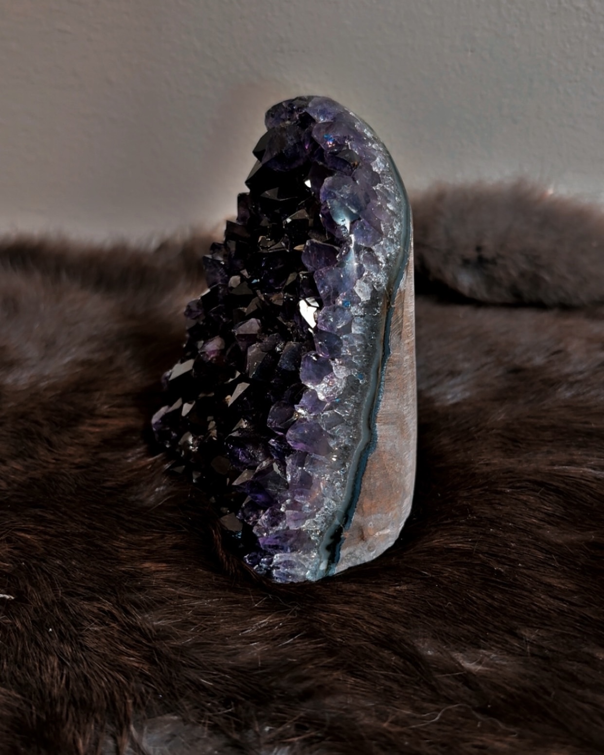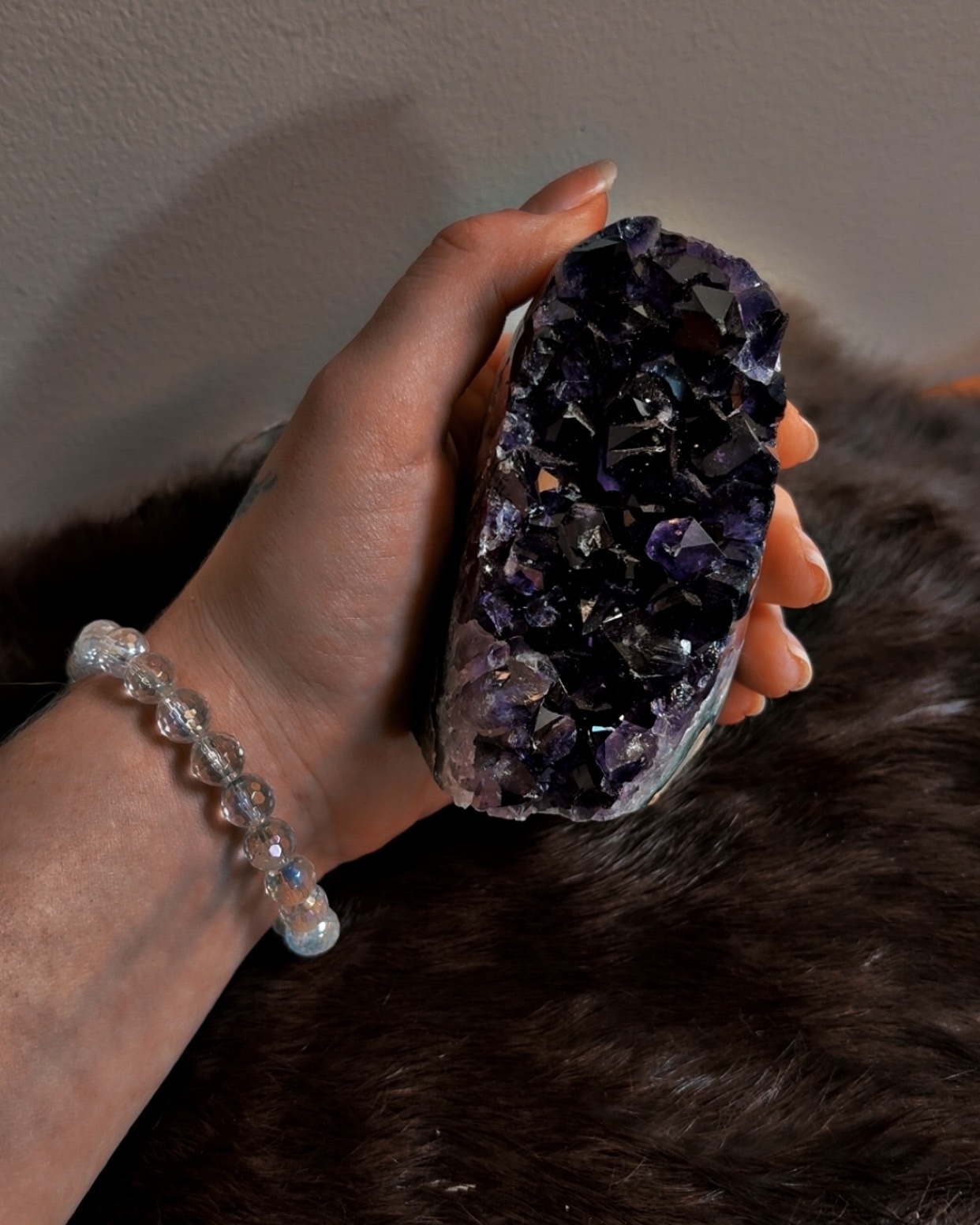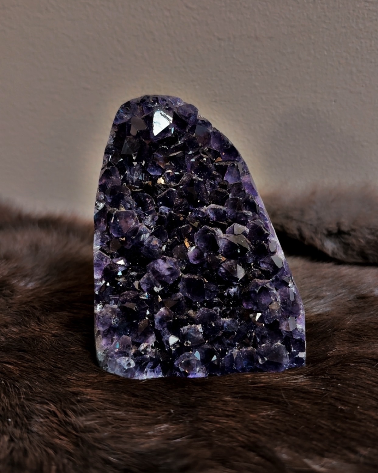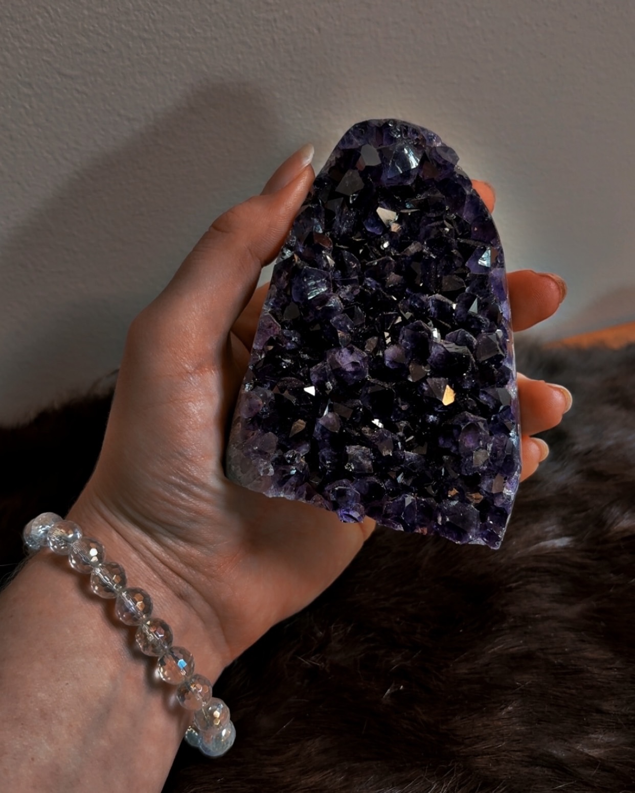 Amethyst at this depth works less through stimulation and more through settling. These pieces feel especially supportive for those with active minds, heightened sensitivity, or strong intuitive channels who need grounding within the upper chakras rather than activation.
